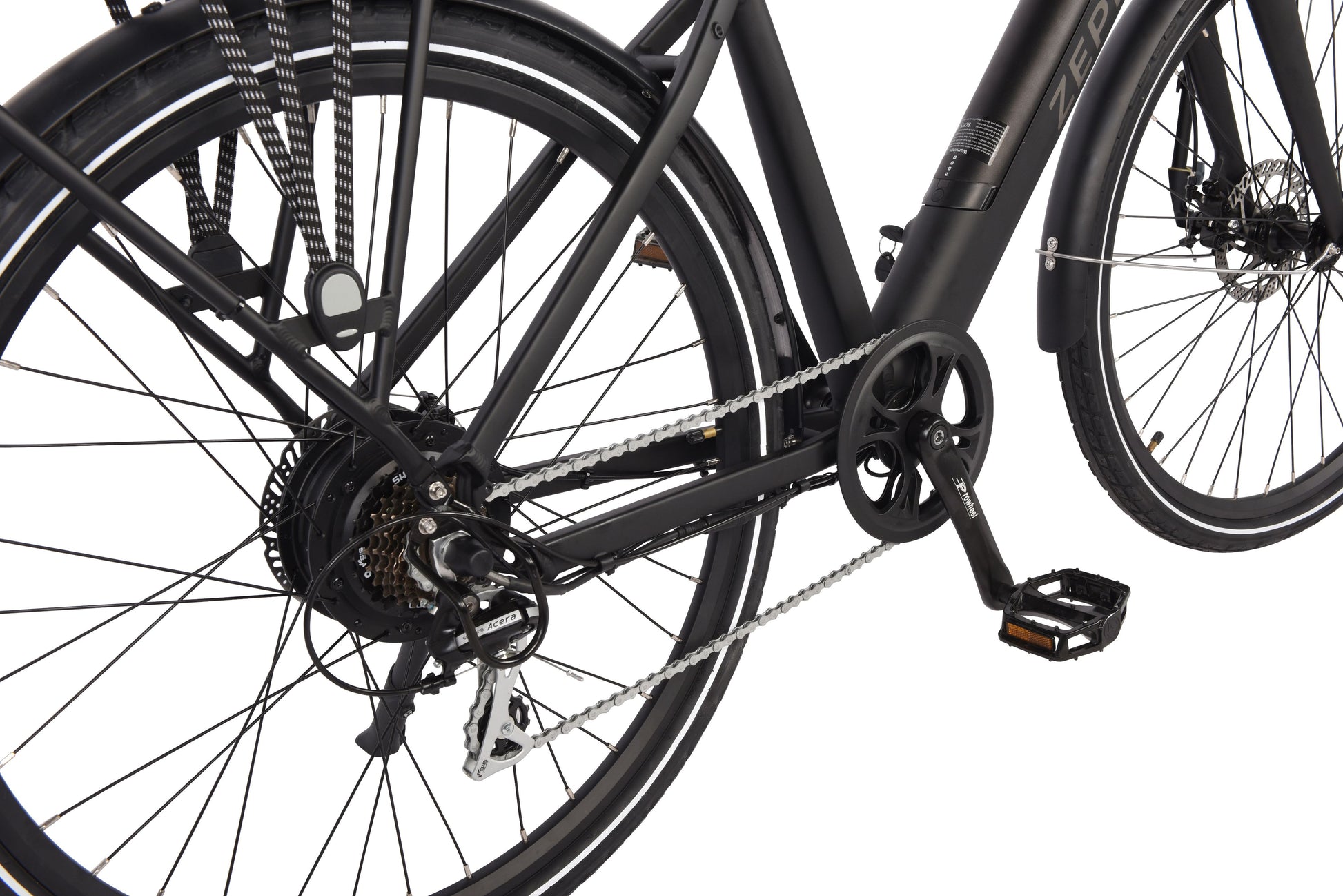 700c road tyres paired with a rear-drive motor deliver smooth, efficient riding ideal for city streets, bike paths, and longer commutes.